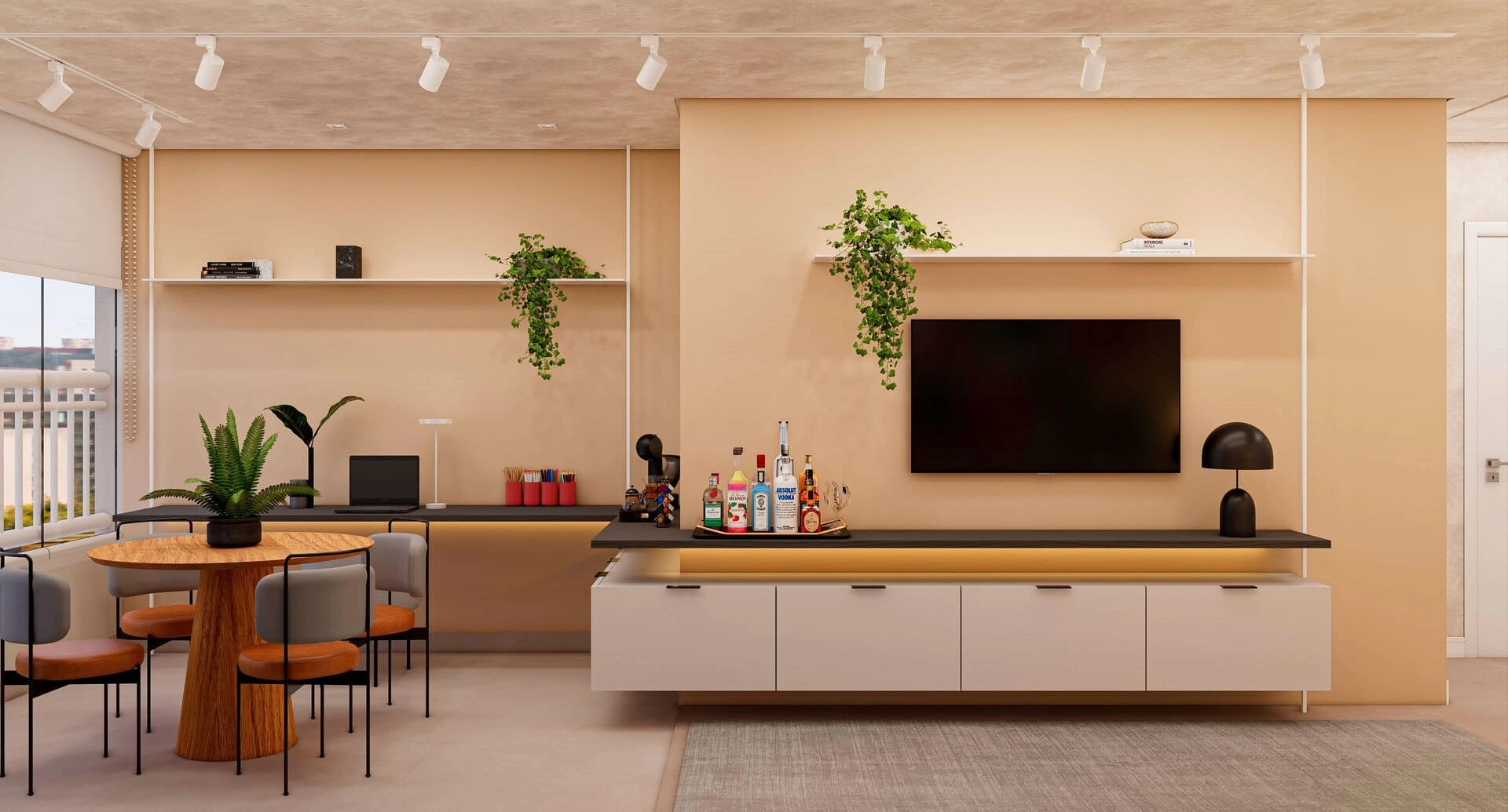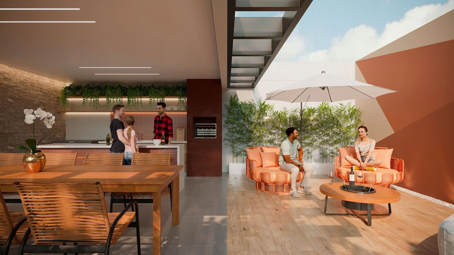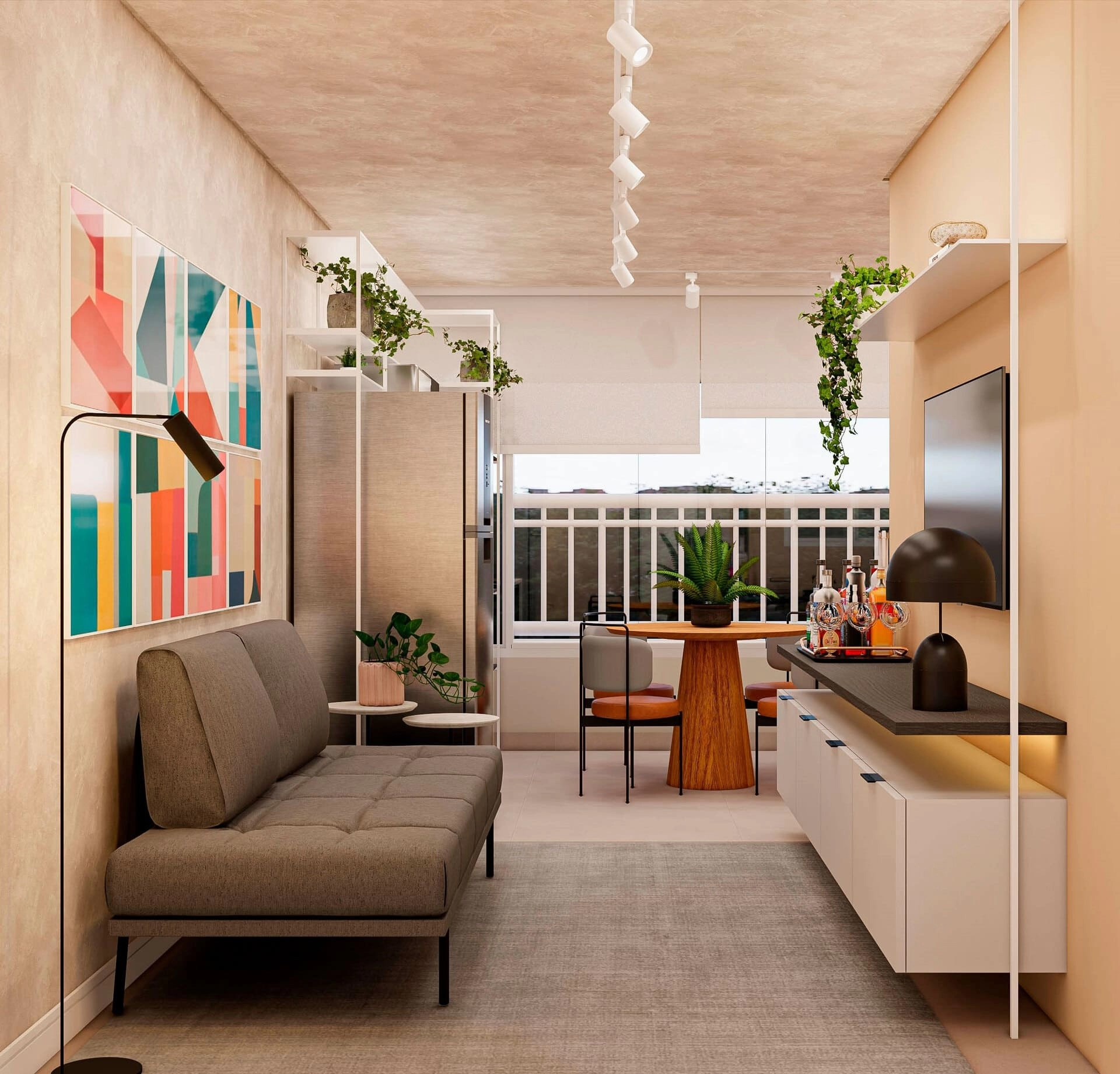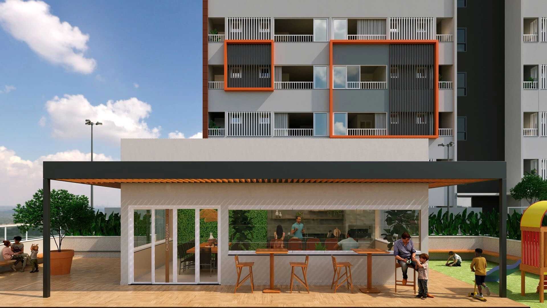 Todas as imagens são meramente ilustrativas. Móveis e utensílios são sugestão de decoração e não são parte integrante da unidade autônoma. Cores, texturas, materiais de acabamentos e decorativos, mobiliário das áreas comuns, paisagismo e detalhes construtivos serão entregues conforme memorial descritivo, mas podem variar por exigências legais da aprovação ou quando da execução.